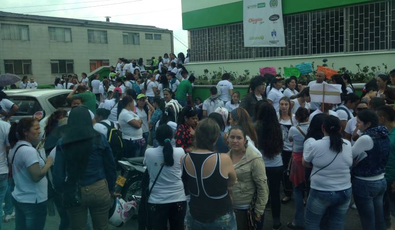 Trabajadoras de los operadores que venían ejecutando el programa de Atención en Primera Infancia del Instituto Colombiano de Bienestar Familiar en Caldas, protestaron frente a las instalaciones de la entidad por su intención de cambiar a 28 de los 38 operadores existentes.