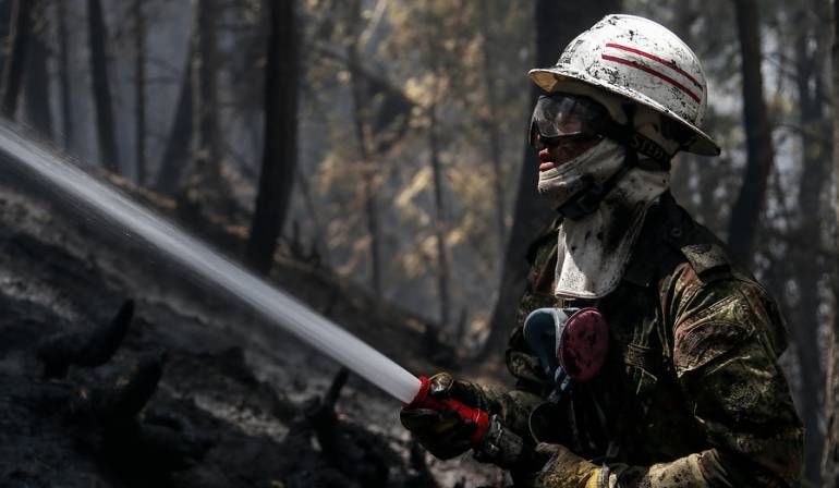 Con agua, palas, picas, barras y rastrillos trabaja el cuerpo oficial de bomberos para combatir puntos calientes en la superficie y debajo de la tierra, hojarasca y retamos espinosos de pinos. Así lo afirmó el comandante del cuerpo oficial de Bomberos de Bogotá, Jorge Lemus.