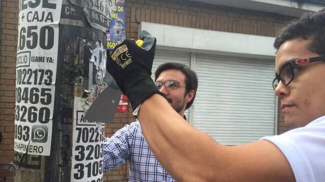 La iniciativa la encabezó el secretario de gobierno, Miguel Uribe, quien con herramienta en mano retiró varios afiches pegados en postes, al funcionario lo acompañaron trabajadores del Distrito y ciudadanos que se unieron de forma voluntaria.