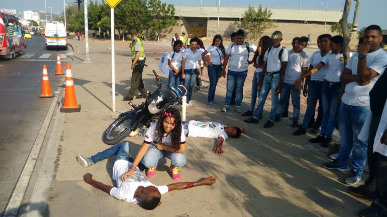 La Policía Metropolitana de Cartagena de india y la Seccional de Tránsito y Transporte, lanzaron en plena vía publica una campaña de prevención vial.