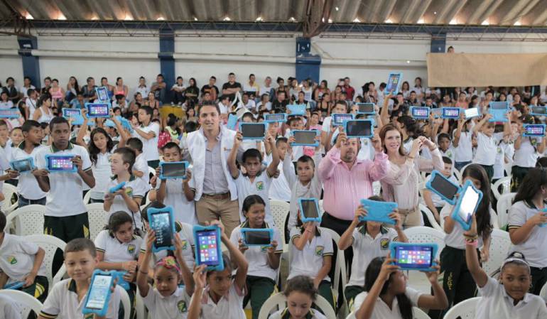 700 tabletas y 230 computadores portátiles que serán distribuidos en 6 instituciones educativas de Pereira fueron entregadas por el Ministerio de las TIC, la idea es disminuir la brecha digital y aportar para el crecimiento intelectual de los menores.