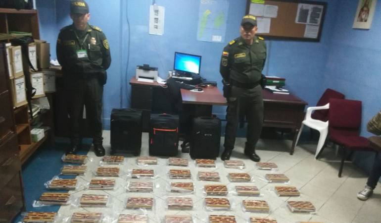 Las tres maletas estaban llenas de la droga empacada en cincuenta paquetes rectangulares.