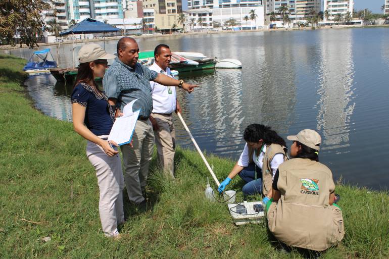 Durante la visita al espejo de agua de El laguito, Olaff Puello Castillo precisó que “en el día de hoy continuamos con la toma de muestras para avanzar en los análisis y, así mismo, realizar unas recomendaciones generales a manera preventiva a la comunidad, entre ellas: evitar el contacto directo con estas aguas, no consumir peces provenientes del cuerpo de agua y no realizar actividades recreativas, hasta tanto la autoridad ambiental no rinda un informe de conformidad con los resultados de laboratorio donde se establezcan las verdaderas condiciones del mismo”.