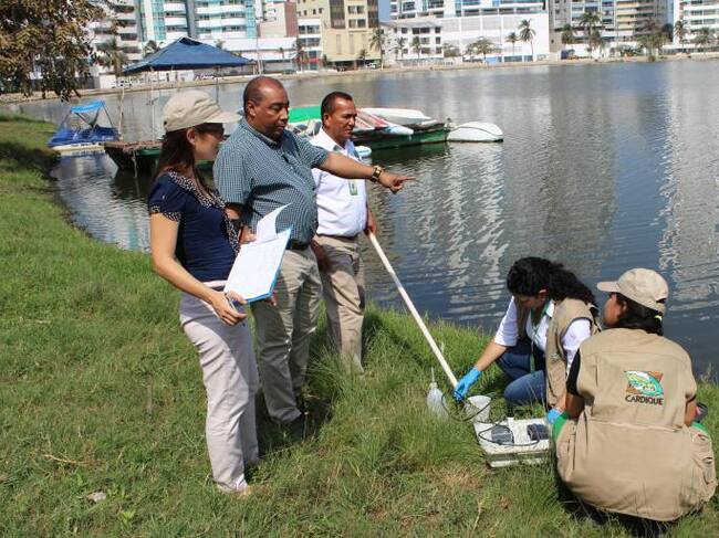 Olaff Puello Castillo, director de la Corporación Autónoma Regional del Canal del Dique (Cardique), con el apoyo de especialistas del Laboratorio de Calidad Ambiental de esa entidad continuó realizando, mediante el seguimiento y monitoreo, el análisis de la calidad del cuerpo de agua de El Laguito para determinar las causas de la mortandad de peces ocurrida intempestivamente el pasado lunes.