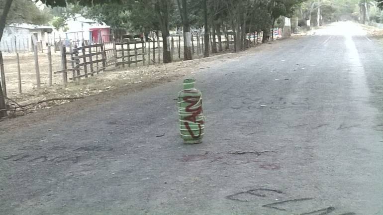 El cilindro fue dejado en la mitad de la vía que conduce hacia el municipio de Norosí y Morales en el sur de Bolívar.