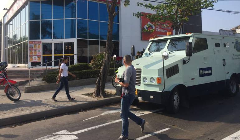 Varios delincuentes en moto y carro interceptaron un carro de valores de la empresa TVS que disponía cargar dinero en un cajero ubicado en un supermercado en la calle 72 con 60, al norte de la ciudad.