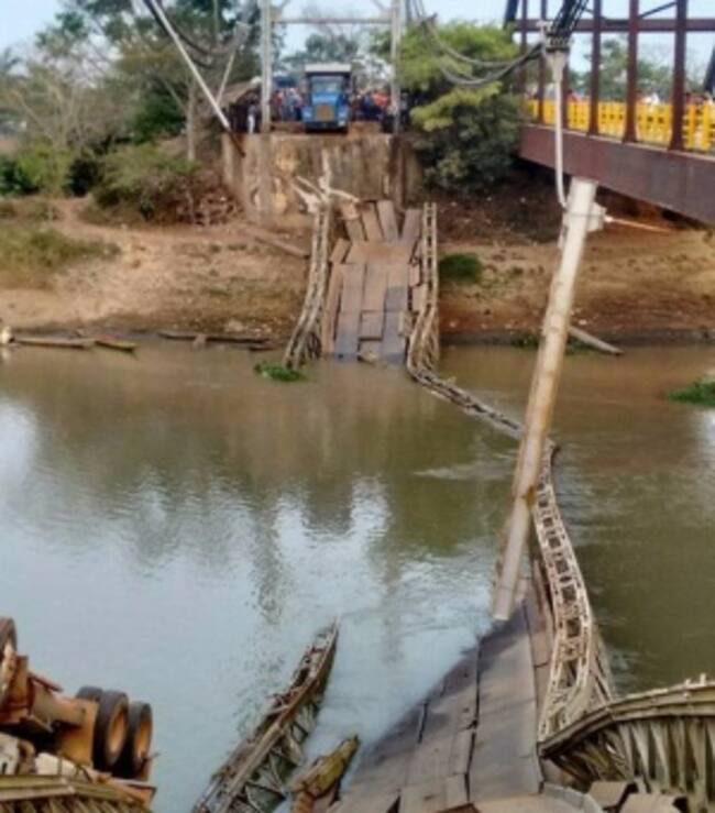 Una volqueta que transportaba materiales de construcción, para la Vía de las Américas, cruzaba el Puente Guayepo, sobre el rio San Jorge, en San Marcos - Sucre, cuando la estructura metálica colapsó y el pesado vehículo cayó al vacío.