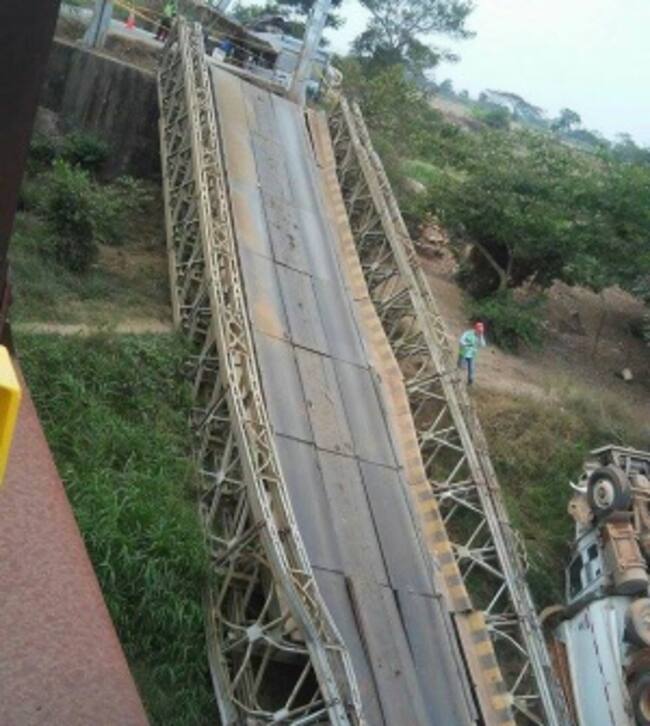 La estructura metálica sobre el rio San Jorge cedió al paso de una volqueta con materiales para la Vía de Las Américas.