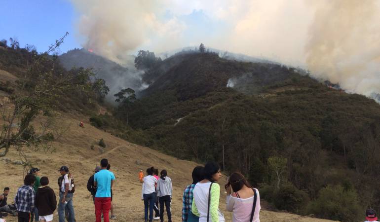 Continúan labores de extinción del incendio forestal en Guatavita y Gachancipá