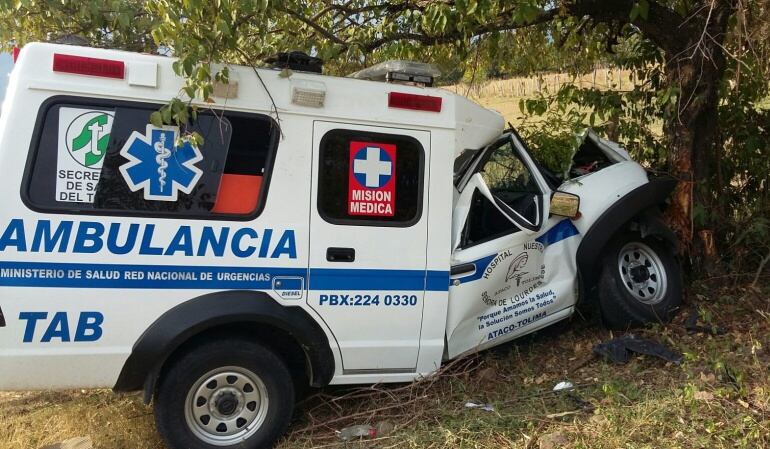 El incidente vial se presentó en la carretera que une a las poblaciones de Ataco con Coyaima donde el vehículo de asistencia médica invadió el carril contrario, inicialmente chocó de frente contra otro vehículo y terminó contra un árbol.