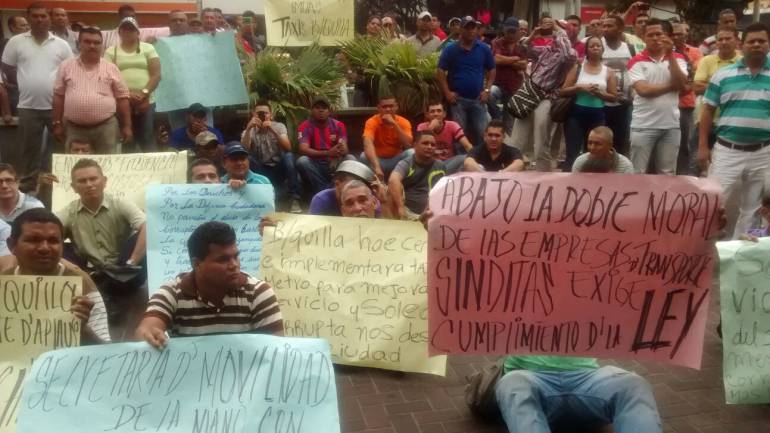 Un grupo de taxistas bloquea la entrada de la alcaldía de Barranquilla y un carril del paseo Bolívar, reclamando porque la sobreoferta de vehículos que supera los cuatro mil automotores.