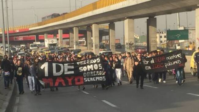 Estudiantes del Sena inician una marcha Desde la Carrera 30 con Avenida Primero de Mayo así como en la Calle 63 para desplazarse hasta la Universidad Nacional.