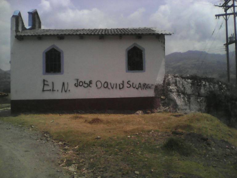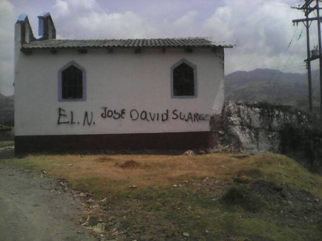 (Graffitis del ELN en Mongua, Boyacá. Foto: Caracol Radio.)