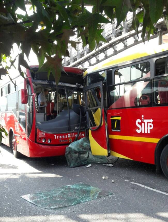 En la calle 80 con Avenida Boyacá, en inmediaciones de la estación Minuto de Dios, se presentó un choque múltiple de tres buses de Transmilenio.