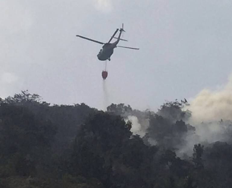Las 20 descargas de agua con liquido retardante realizadas por un helicóptero Black Hawk del Comando Aéreo de Combate Número 5 con el sistema Bambi Bucket, han sido insuficientes para extinguir el incendio forestal que desde hace 5 días se presenta en el municipio de La Ceja.
