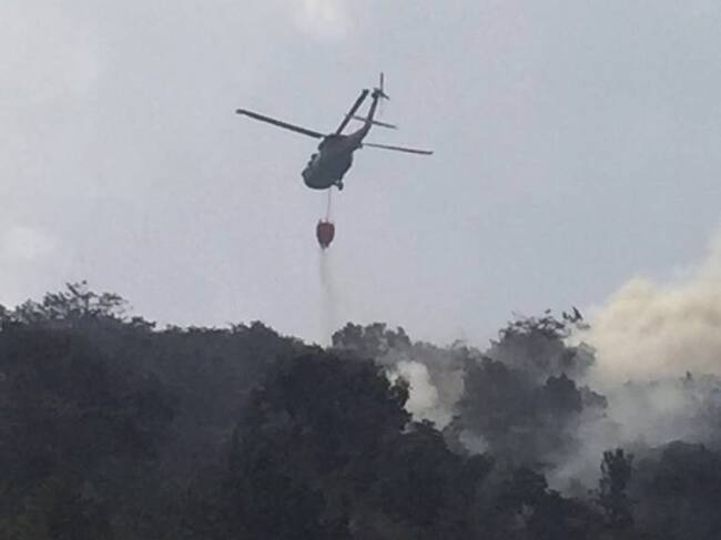 La Fuerza Aérea Colombiana desde ayer comenzó a apoyar a los 36 bomberos de Rionegro, la Unión, Guarne, el Carmen, el Retiro y La Ceja, que no han podido sofocar el fuego que ya ha destruido unas 20 hectáreas de una zona de reserva natural, en el cerro ‘Tres Pinos’ cerca al área urbana de La Ceja.