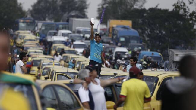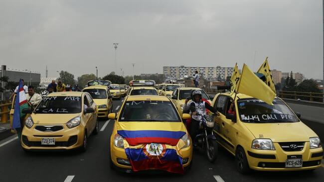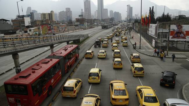 Avanza manifestación de taxistas en varias vías de Bogotá