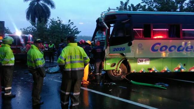 Al menos once personas resultaron heridos al chocar una buseta de Codetrans y un tren cañero a la altura del kilómetro 18 de la vía entre Cali y Palmira, confirmó el capitán Carlos Castro, de la Policía de carreteras.-