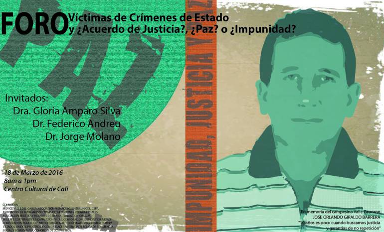 En el marco de la conmemoración de los diez años de la ejecución extrajudicial del campesino José Orlando Giraldo Barrera, ocurrida el 11 de marzo de 2006 en el corregimiento de Golondrinas de Cali, este viernes se llevará a cabo el Foro: Víctimas de Crímenes de Estado y ¿Acuerdo de Justicia?, ¿Paz? o ¿Impunidad?
