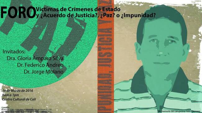 El Foro es organizado por el Movimiento Nacional de Víctimas de Crímenes de Estado, capitulo Valle.