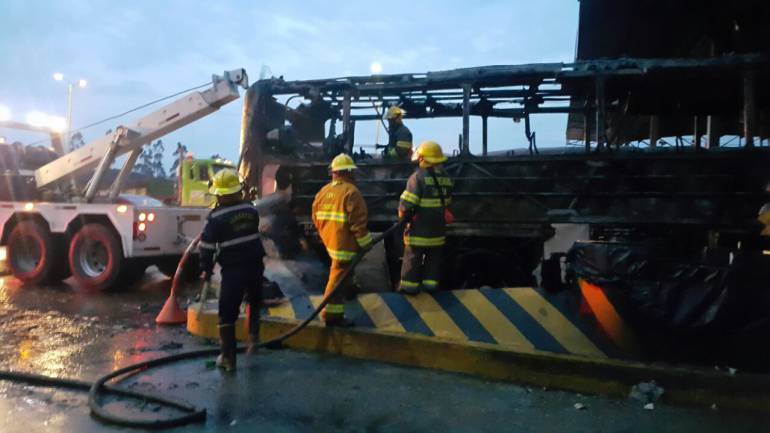 Bus que cubría la ruta Yopal-Bogotá se incineró en un peaje de Boyacá