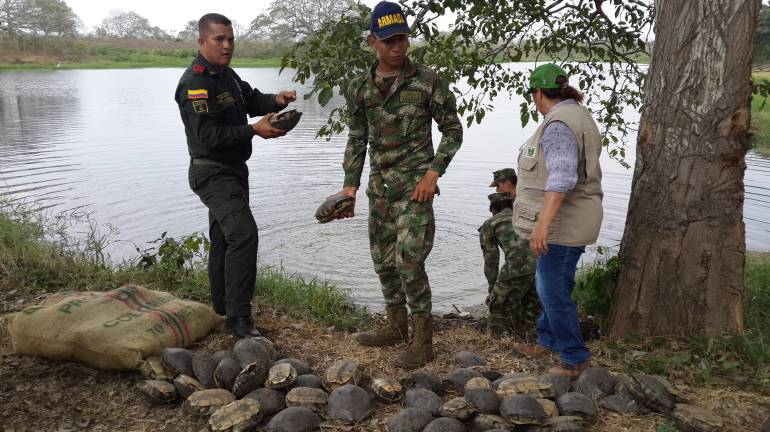“En lo que va corrido de 2016 se han incautado cientos de hicoteas y más 80 mil huevos de iguana, así como diferentes especies de animales como monos, babillas y otros que son llevados hasta el Batallón de Infantería de Marina de Malagana, y, posteriormente, cuando los cuerpos de agua de la zona se recuperen, son liberadas.