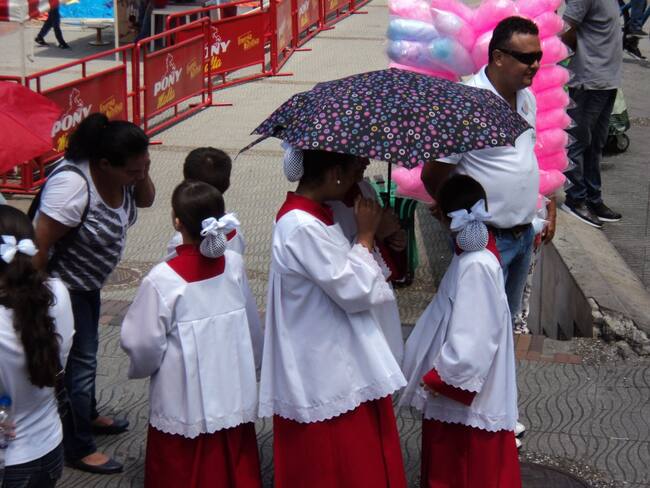 Foto 6 de 10Los niños con su atuendo de monaguillos también buscan las sombrillas debido al fuerte sol