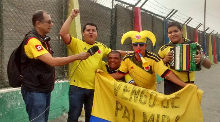 Los aficionados también han llegado al estadio desde bien temprano como Germán Muñoz, quien procede de Palmaria en el Departamento del Valle del Cauce, que no deja de sonar se vuvuzela y mostrar la bandera colombiana.
