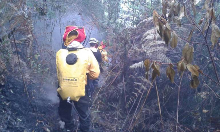 El fuego que no se había podido extinguir pese a la intervención de unos 70 hombres entre bomberos, socorristas, soldados y voluntarios, quienes contaban con el apoyo de un helicóptero de la Fuerza Aérea, gracias a esas precipitaciones comenzó a apagarse, reportó Gilberto Mazo, coordinador del manejo de desastres del Dapard.