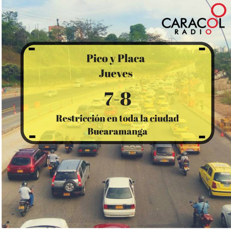El pico y placa vigente para hoy jueves, corresponde a los números 7 y 8 en toda la ciudad.
