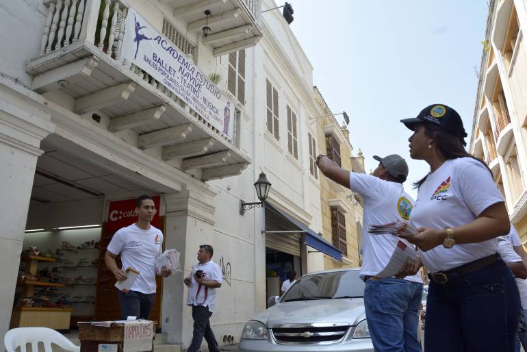 Con cartilla en mano la directora del IPCC Bertha Lucía Arnedo Redondo y funcionarios de la División de Patrimonio Cultura se tomaron el Centro Histórico de la ciudad con la campaña pedagógica ‘Descontaminación Visual del Centro Histórico de Cartagena’, promoviendo el cumplimiento de las normas que regulan la instalación de avisos y las fachadas con el fin de evitar la imposición de sanciones.