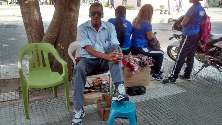 El lustrabotas Ezequiel Sotelo, quien atiende en su puesto en el tradicional Paseo Bolívar en el Cetro Histórico de Barranquilla, recuerda con lucidez la época de las casas de paja y de los reconocidos cafés como El Roma.