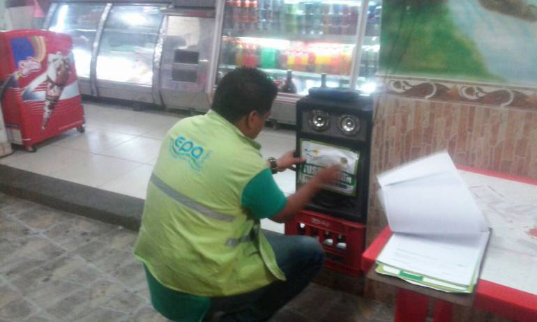En un operativo de la Subdirección Técnica y de Desarrollo Sostenible del EPA Cartagena realizado el fin de semana en diferentes barrios de la ciudad se encontraron establecimientos comerciales que tenían volúmenes altos, afectando la tranquilidad ciudadana, y otros con parlantes en espacio público.