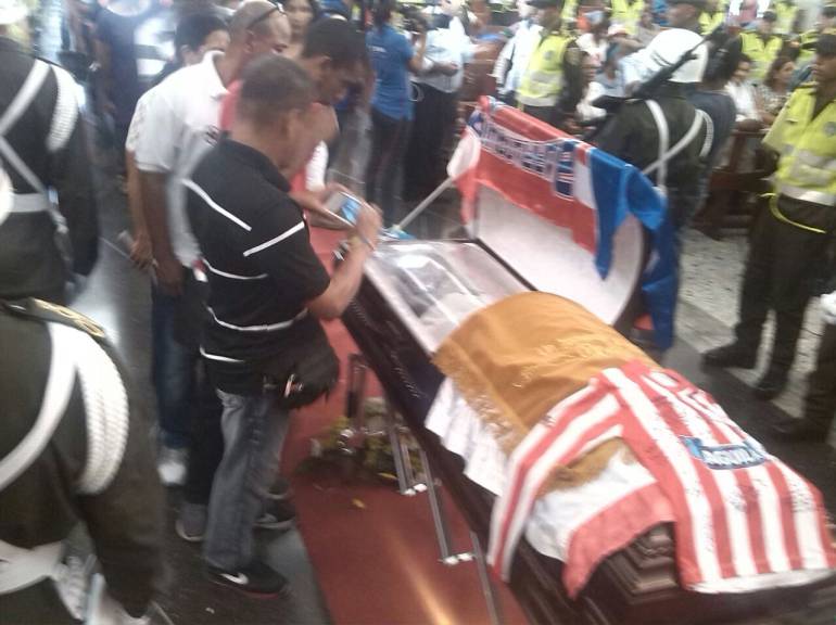 Tras ser colocado el cofre frente al altar mayor, inició el desfile de admiradores de Perea que aprovechan para hacerse una foto, hacer comentarios y algunos hasta a cantar un gol al mejor estilo del 'negro' Perea.