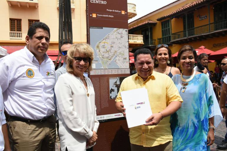 La Ministra Álvarez-Correa, junto al alcalde de Cartagena, Manuel Vicente Duque, inaugurarón la primera fase del proyecto de señalización turística en la plaza Santo Domingo, el cual consta de cinco señales turísticas peatonales.