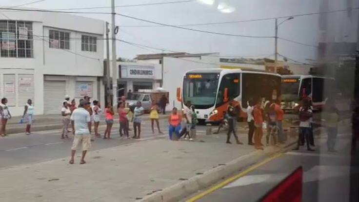 La protesta bloqueó la vía impidiendo el paso de los buses de Transcaribe, afectando la operación del sistema por varias horas.