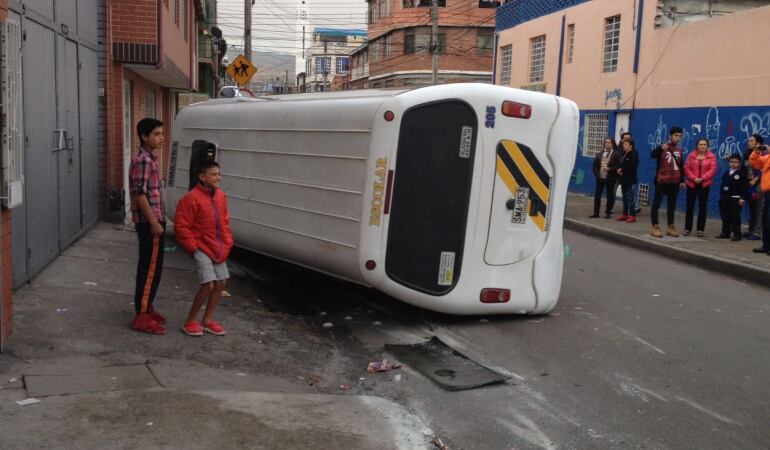Siete personas lesionadas por accidente de bus escolar en Bogotá