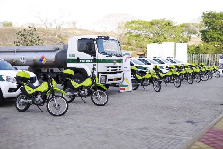Con inversión financiera de 1400 millones de pesos dispuesta por parte de la Dirección General de la Policía Nacional está Fuerza Pública con el apoyo del Gobierno Departamental del "Bolívar Si Avanza " entregó un parque automotor de 10 camionetas, 13 motocicletas y un carro tanque para municipalidades del Sur y Centro de Bolívar.