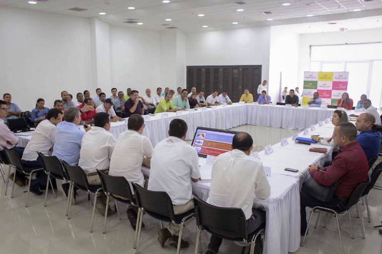 Con el fin de mejorar condiciones de Saneamiento Básico, Aseo y Agua Potable en 27 de 45 municipios, incluyendo procesos administrativos, de certificación y legalidad, el Gobierno del “Bolívar Sí Avanza” convocó a una importante jornada de trabajo efectuada en el salón de La Paz del nuevo Centro Administrativo, la cual contó con la presencia del primer mandatario seccional, Dumek Turbay Paz, el nuevo viceministro de Agua, Carlos Correa y 17 alcaldes municipales de varias regiones del Departamento.
