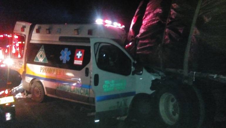 Según el reporte entregado por el comandante de la Policía de Tránsito y Transporte del Tolima, mayor Víctor Tafur el accidente se presentó cuando un camión se encontraba estacionado sin ningún tipo de señalización y fue chocado por una ambulancia afiliado a la empresa Promover y de matrícula MWQ 029 donde fallece su conductor y la paciente que transportaba.