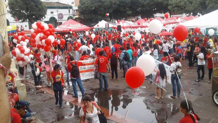 La jornada de protesta se desarrolló en todo el país y, en Bucaramanga, se vistió de rojo y blanco, acompañada de globos simbólicos.