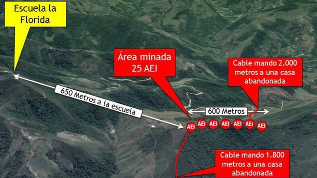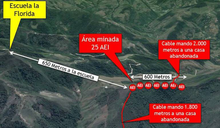 Según el general Montoya los cuales se encontraban extendidos a lo largo de 600 metros con un sistema doble de activación por cable mando.