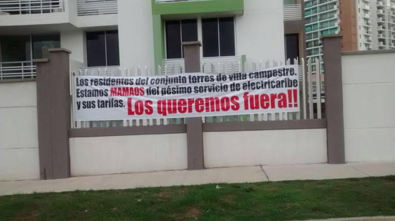 Tan desesperados están los habitantes de Villa Campestre, un exclusivo sector del norte de Barranquilla, que pagaron pancartas que ubicaron en la calle donde se puede leer: “Los residentes del conjunto Torres de Villa Campestre, estamos mamaos del pésimo servicio de Electricaribe y sus tarifas, y los queremos fuera!”