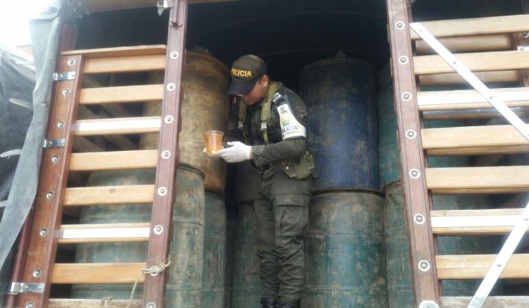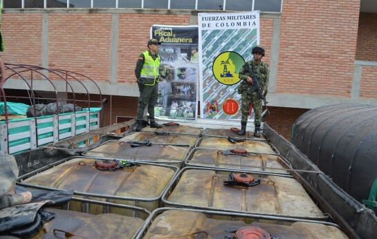 Al inspeccionar el contenido de los automotores, tres de placas colombianas y uno de placas venezolanas, se evidenciaron varios recipientes plásticos conocidos como baritanques y canecas metálicas, los cuales tienen capacidad para almacenar 300 y 50 galones de hidrocarburos, respectivamente.