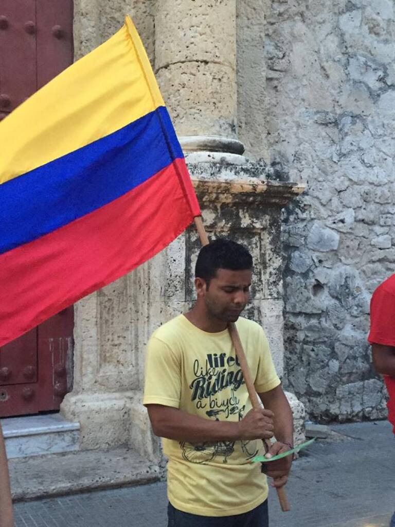 • Banderas de Colombia y Cartagena también se hicieron presentes en la manifestación.