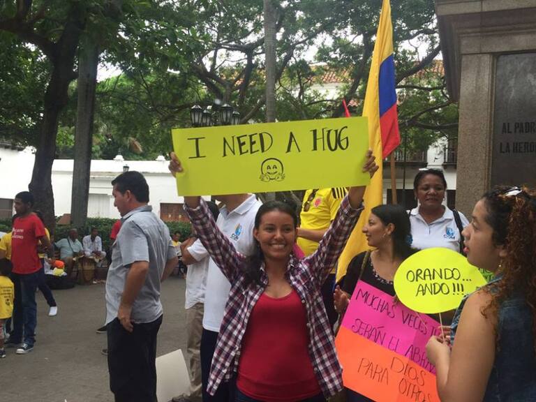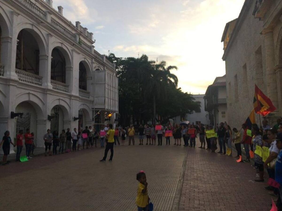 • Abrazos en Cartagena para protestar contra el decreto de un juez.