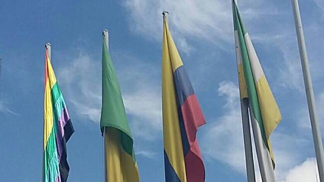 Por primera vez en la historia de Armenia, la bandera de la comunidad Lgbti asciende por las astas de la alcaldía. / Jhon Hernández