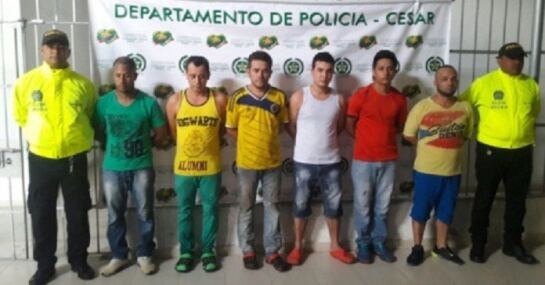 Allí fueron capturados en flagrancia seis sujetos identificados como Juan Pinto Rojas, de 43 años; Sergio Andrés Cárdenas Toloza, 23; Janier Eduardo Gamboa Benavidez, 20, naturales de Bucaramanga; Néstor Freddy Guerrero Félix de 38 años, natural de Tunja; Anderson Forero Torres, 35, natural de Aguachica, y Julián Andrés Sierra Sepúlveda, 31 años, natural de Pereira.