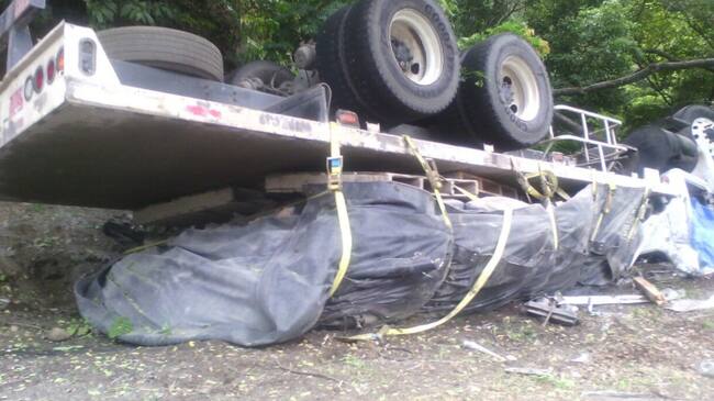 El incidente vial se presentó, al parecer, por fallas mecánicas. El vehículo transportaba un cargamento de cemento.