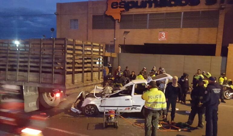 El accidente de tránsito involucra un vehículo particular que chocó por detrás a un furgón, el fuerte golpe provocó la muerte del conductor del automóvil y dejó herida a la persona que lo acompañaba.